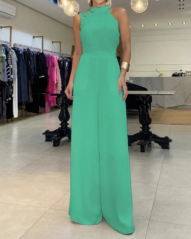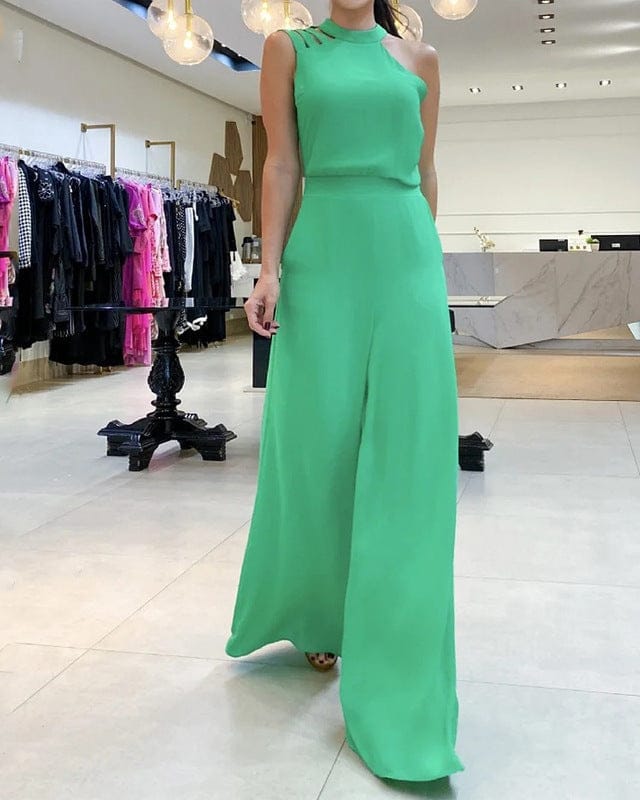 Cette combinaison sans manches arbore un design uni et des découpe « hollow-out » irrégulières, offrant une touche de sophistication discrète à un look décontracté. La coupe fluide et ample crée un effet élégant et confortable, parfait pour les journées d’été ou les après-midis printaniers