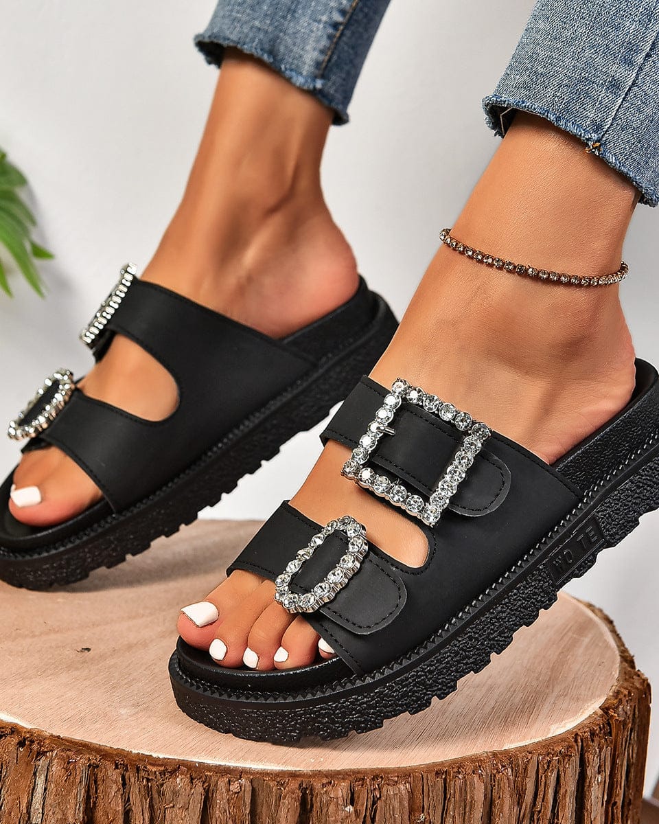 Ajoutez une touche de luxe à votre look avec ces sandales à plateforme cloutées. La bride est ornée de pierres scintillantes, un détail élégant qui attire le regard à chaque pas.