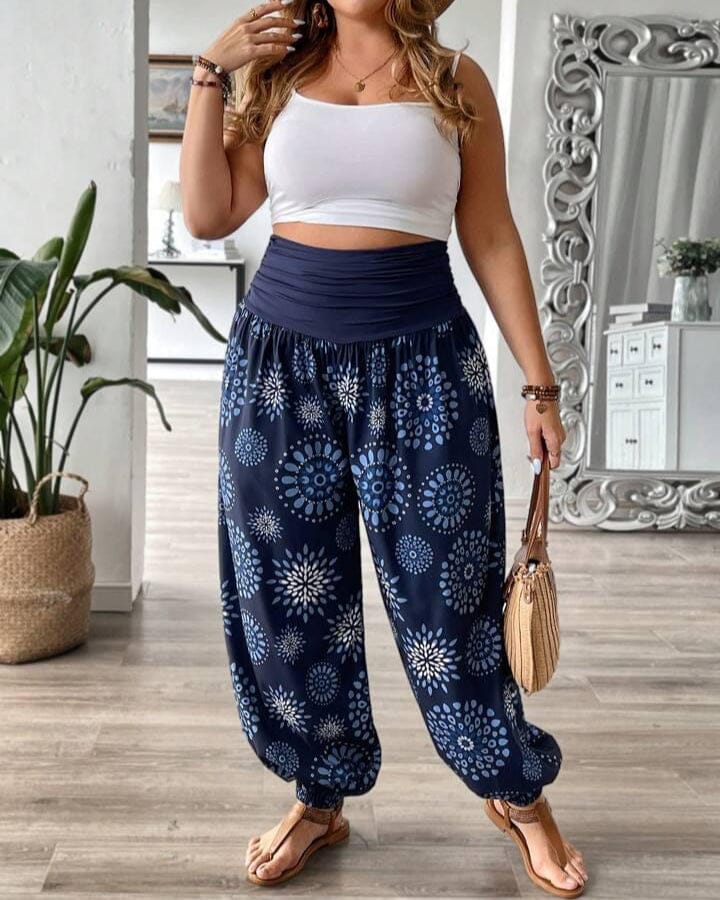 L'imprimé floral lui confère une touche douce et féminine, à la fois estivale et élégante, rappelant les pantalons d'été ornés des modèles légers.